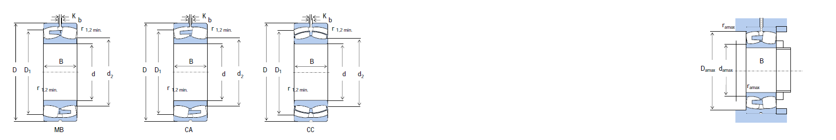 | Designations | Abutment and Fillet Dimensions | Calculation Factors | Mass (kg) |